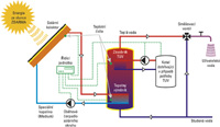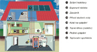 Další typická řešení solárních systémů jsou kombinace ohřevu vody a přitápění, kdy je solární systém zapojen nejčastěji do kombinované akumulační nádrže, která pak dále zajišťuje přípravu teplé vody a vytápění objektu.